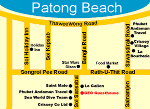 Contact GEO Guesthouse: Tel: 076-342-509 Soi Sansabai, Patong Beach, Kathu, Phuket, Thailand, 83150.